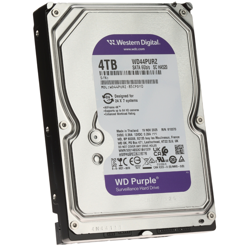 3.5" HDD 4.0TB-SATA- 128MB Western Digital "Purple (WD44PURZ)", Surveillance, 24/7, CMR, 5400rpm, 1