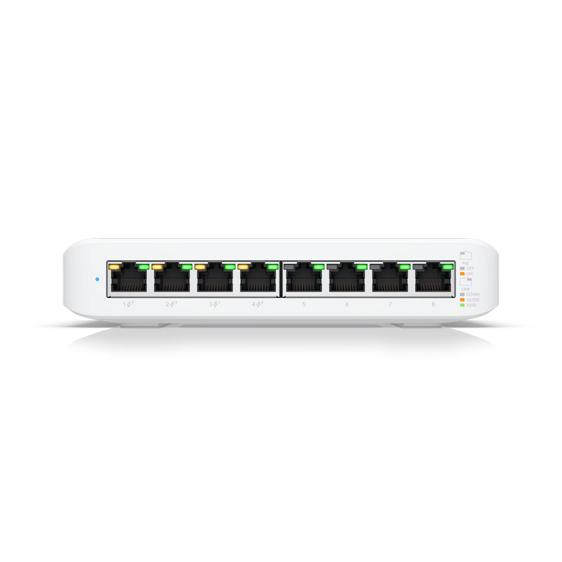 .8-port 10/100/1000Mbps Layer 2 Managed Ubiquiti PoE+ Switch, USW-Lite-8-POE, 8xPoE Ports, 52W budge