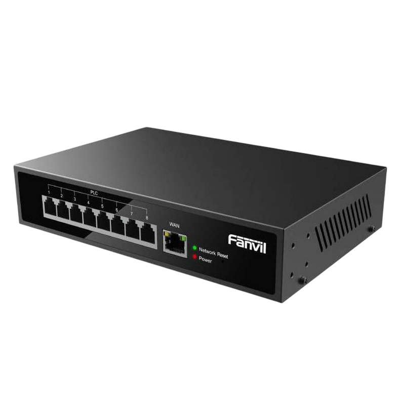 .8-port 10/100Mbps POE, Fanvil 2-wire Switch "PN8", with 8-Port RJ11 PoE, 1xRJ45, 80W Budget, up t