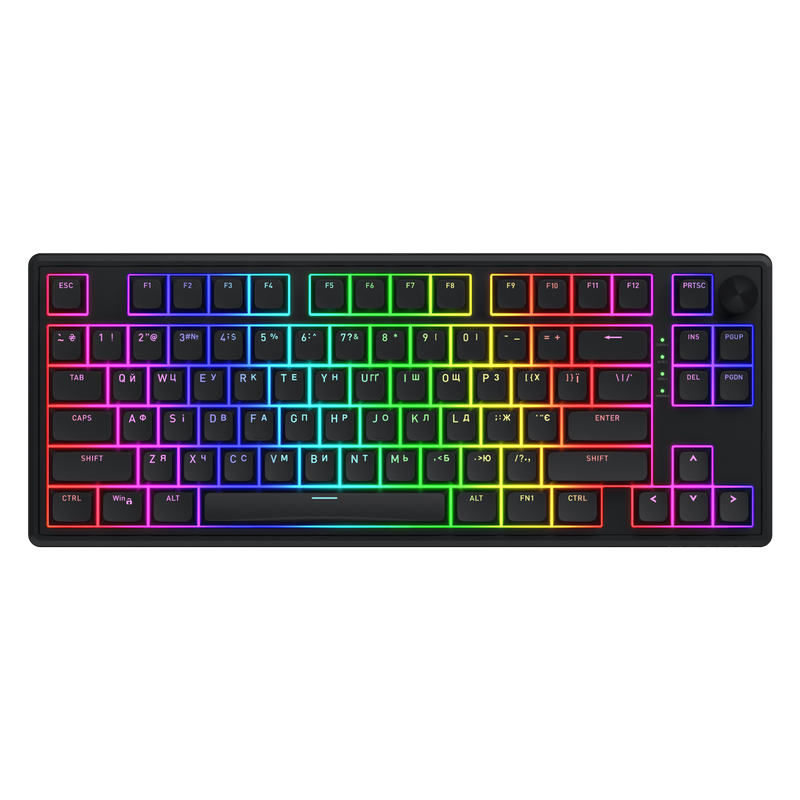 Tip de conexiune: Cu fir / Fără fir Aspecte Lingvistice: Engleză, Ucraineană Sursă de alimentare: Baterie Integrată Tehnologia Tastaturii: Mecanic Efecte de iluminare: RGB backlight