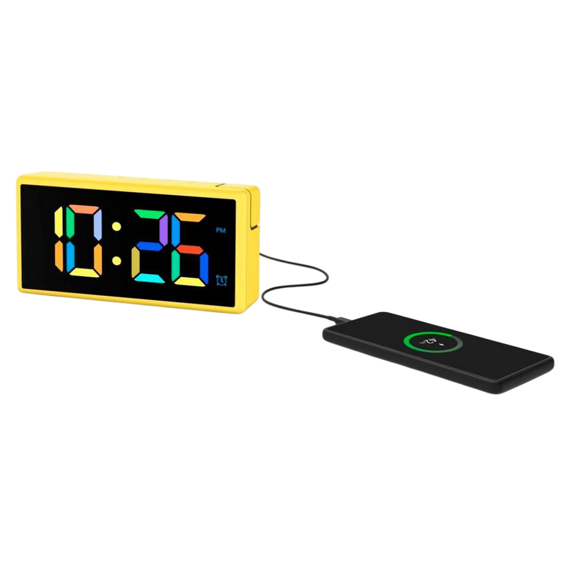 Hama Ibiza Digital Alarm Clock, Multi-colour display with USB Charging Function Yellow (222210)