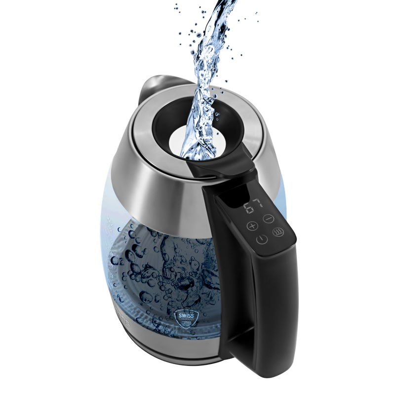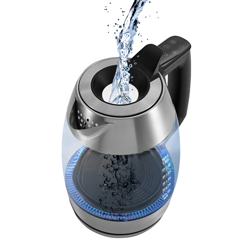 Volum : 1,8 L Consum energie: 2200 W Materialul carcasei: Oțel Inoxidabil, Sticlă Iluminare: Da Indicator nivel apa: Da Protecţie împotriva funcţionării fără apă: Da