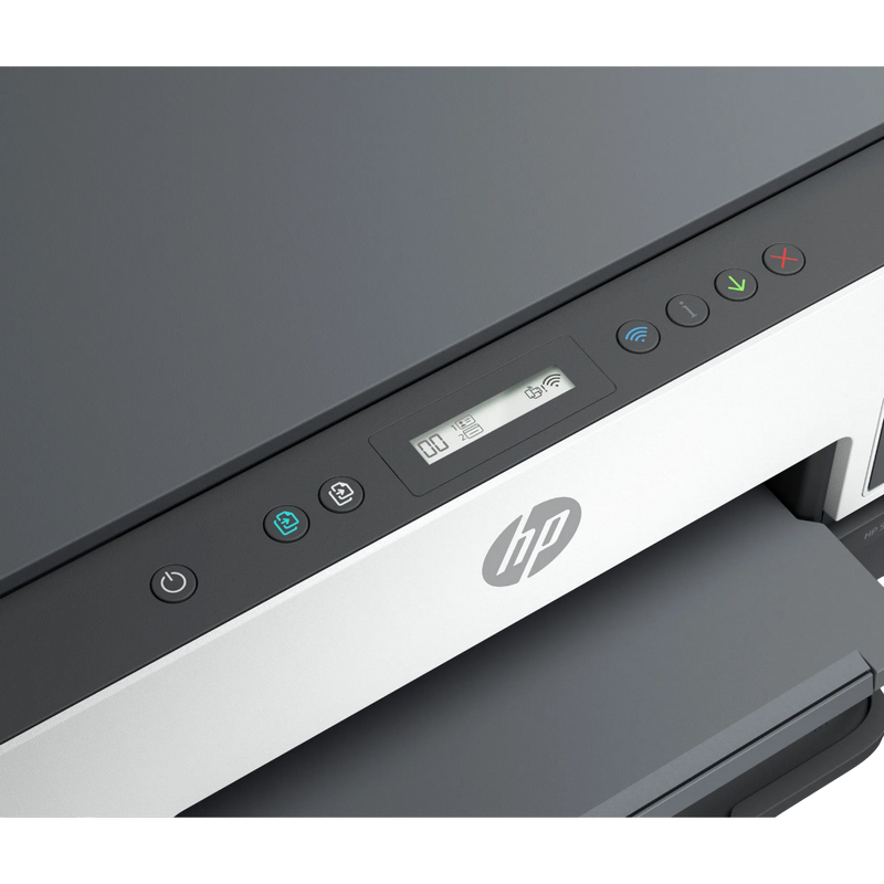 A4 Colour Smart Tank All-in-One Printer Functions: Print, Scan, Copy, Wireless Print technology: HP Thermal Inkjet Print speed: Black (A4, ISO): Up to 12 ipm; Colour (A4, ISO): Up to 7 ipm; Draft black (A4): Up to 22 ppm; Draft colour (A4): Up to 21 ppm; Draft black (A4 Memo): Up to 30 ppm; Draft colour (A4 Memo): Up to 28 ppm First page out: Black (A4, ready): As fast as 15 sec; Colour (A4, ready): As fast as 18 sec Print resolution: Black (best): Up to 1200 x 1200 rendered dpi; Colour (best): Up to 4800 x 1200 optimized dpi color when printing from a computer and 1200 input dpi Monthly duty cycle: Up to 3,000 pages A4; Recommended monthly page volume: 400 to 800 Standard print languages: HP PCL 3 GUI Borderless printing: Yes (up to 8.5 x 11 in, 210 x 297 mm) Number of supplies: 4 (1 each black bottle, set of 3 color bottles) Duplex printing: Automatic Copy speed: Black (A4, ISO): Up to 11 ipm; Colour (A4, ISO): Up to 5 ipm Scan speed Normal (A4): Up to 200 ppi/19 secs (color), up to 200 ppi/10 secs (mono) Scan file format: JPG, BMP, TIFF, PDF, PNG Scanner specifications: Scanner type: Flatbed; Scan input modes: Front Panel Copy; HP Software; Twain version: Version 2.1; Scan size maximum (flatbed): 216 x 297 mm; Optical scan resolution: Up to 1200 dpi Bit depth/ Grey scale levels: 24-bit / 256 Processor speed: 800 MHz Memory Standard: 128 MB Number of paper trays Standard: 1 Media weight, supported Plain paper: 60 to 105 g/m²; Envelopes: 75 to 90 g/m²; Cards: up to 200 g/m²; Photo paper: up to 250 g/m² Input capacity: Standard: Up to 150 sheets, Envelopes: Up to 10 envelopes, Cards: Up to 30 cards Output capacity: Standard: Up to 100 sheets, Envelopes: Up to 30 envelopes, Cards: Up to 30 cards Connectivity Standard: 1 Wi-Fi Direct; 2 Hi-Speed USB 2.0 (device) Replacement cartridges: HP GT53XL 135-ml Black Original Ink Bottle 1VV21AE; HP GT52 Cyan Original Ink Bottle M0H54AE; HP GT52 Magenta Original Ink Bottle M0H55AE; HP GT52 Yellow Original Ink Bottle M0H56AE;