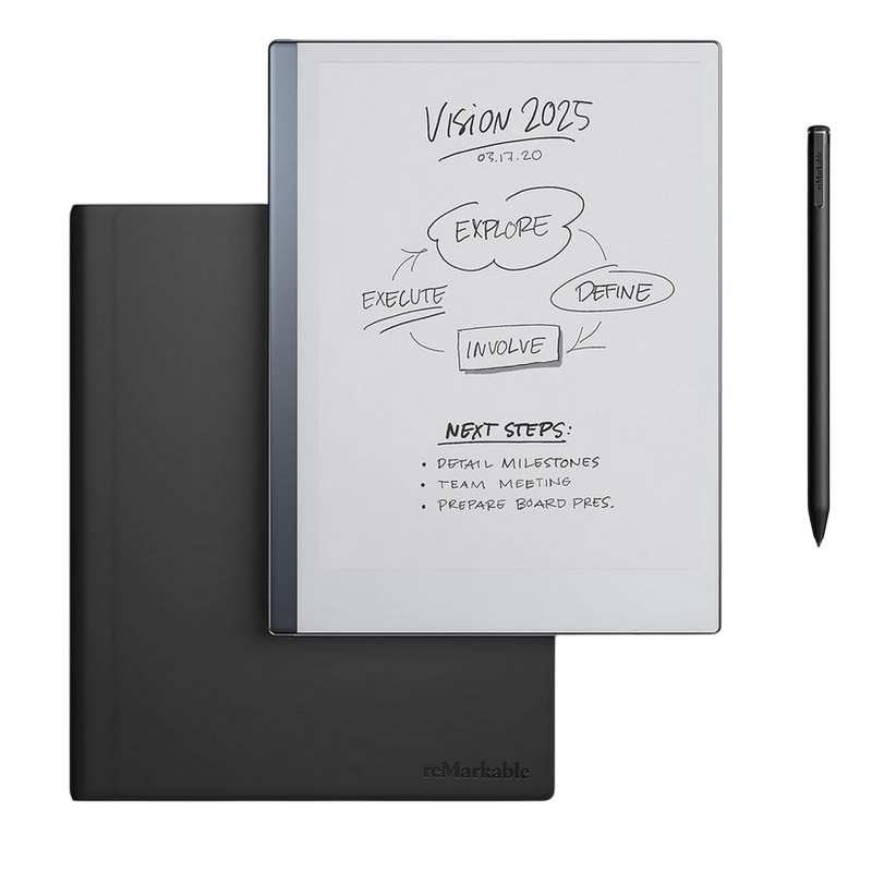reMarkable 2 Essentials Bundle with Marker Plus Book Folio Polymer, Leather Black