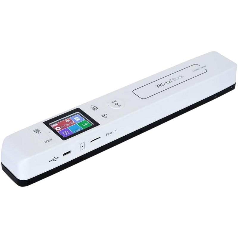 Scanner specifications: Image sensor: Image sensor A4 color contact image sensor (CIS) Resolution: 300 - 600 - 1050 dpi Scanning Speed: 300 dpi 4 sec, 600 dpi 7 sec, 1050 dpi 11 sec Capacity: 300 dpi color : 2000 JPEG images 600 dpi color : 1000 JPEG images 1050 dpi color : 500 JPEG images File format: JPEG, PDF LCD: 1.5” Color with scanning status display/preview USB port: USB-C External memory capacity: MicroSD™ card / MicroSDHC™ card up to 32 GB Battery type: Built-in rechargeable 900mAH Lithium-ion Polymer battery Battery life (scanning to MicroSD™ Card): 750 pages daily after recharging (A4, 300 dpi, color)
