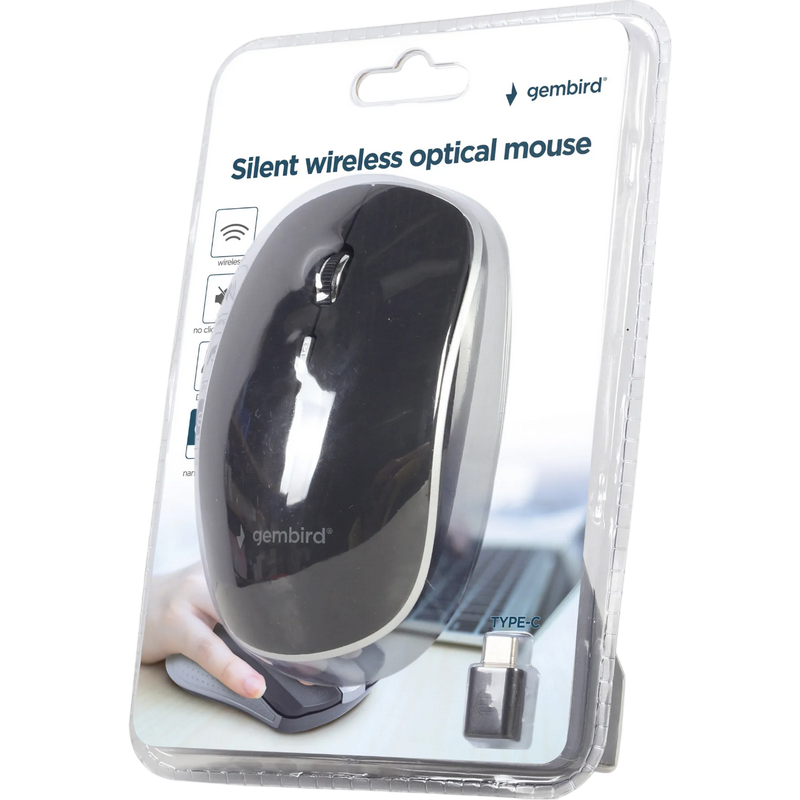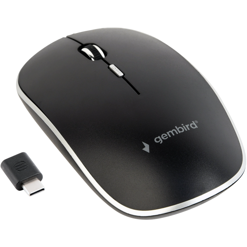 Wireless Mouse Gembird MUSW-4B-01, Type-C receiver, Optical, 800-1600 dpi, 4 buttons, Ambidextrous,